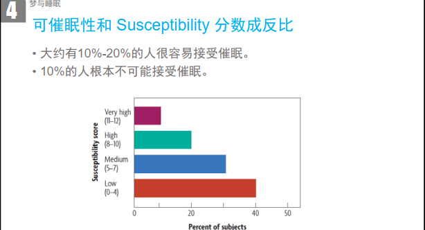 - 10% 的人根本不可能接受催眠 → 对应图里的 Very high(11-12 分) 区间。