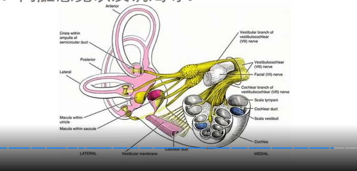 那张带有英文标注的耳朵解剖图,核心是展示内耳的前庭 - 耳蜗结构,它是 ** 平衡觉(前庭觉)** 的核心生理载体,和运动觉也有间接关联,与肌体觉则无直接生理联系,具体关联和图示意义如下: