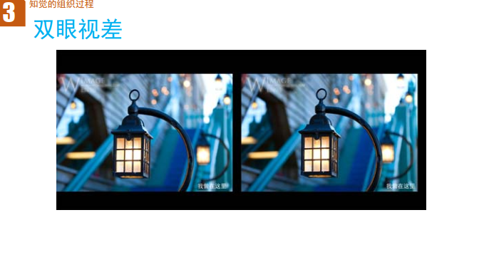 画面中呈现的两张高度相似但略有差异的图片,分别模拟了左眼和右眼对同一场景的成像效果:两张图的细节(如背景景物的位置、角度)存在微小不同,对应了双眼视差中 “左右眼成像有差异” 的核心特征。