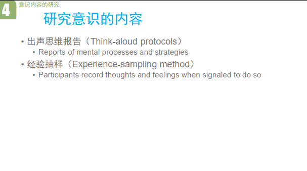 它这一章和前面的又不太一样,前面讲的研究意识的两种方法,对吧?这个呢,讲的又是新的内容。是这个意思吗?它好像是用经验法来做出的一个一种实验。